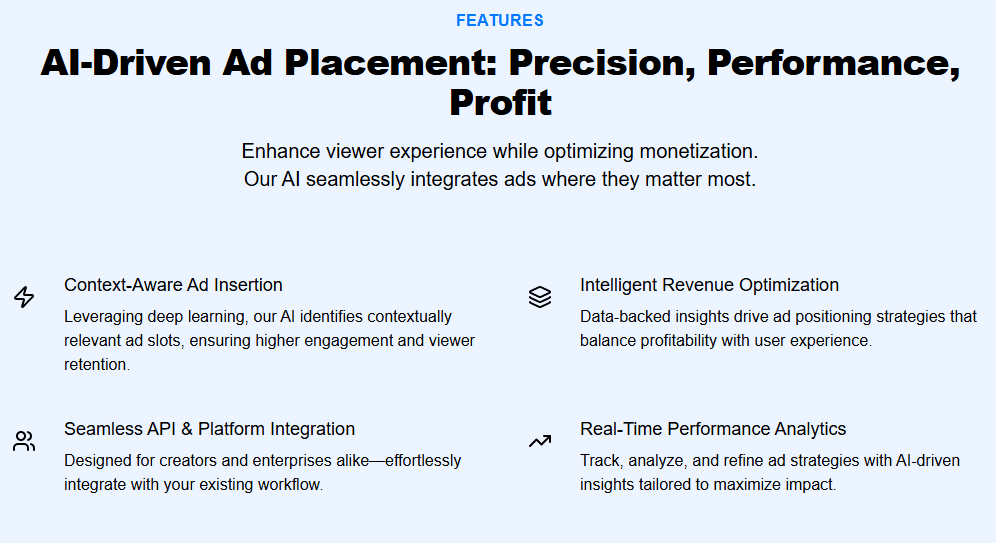Currently, Admentary offers API integration capabilities for enterprise users, allowing connection with CMS systems, marketing automation platforms, and analytics tools.