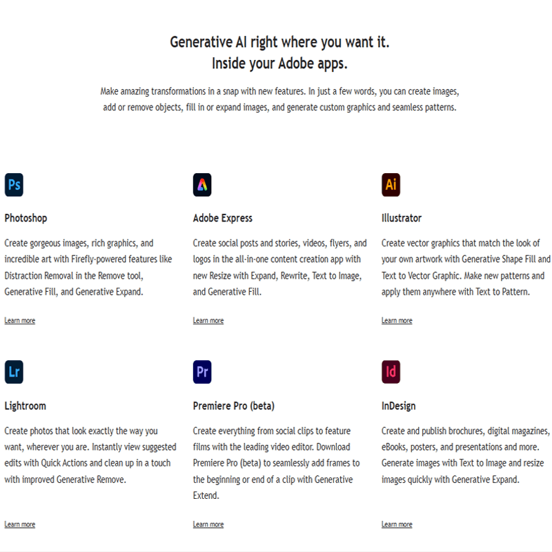•Adobe Firefly is available through the Adobe Creative Cloud platform.