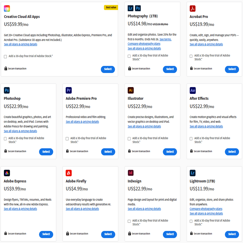 •Adobe Firefly is available to all Adobe Creative Cloud subscribers.