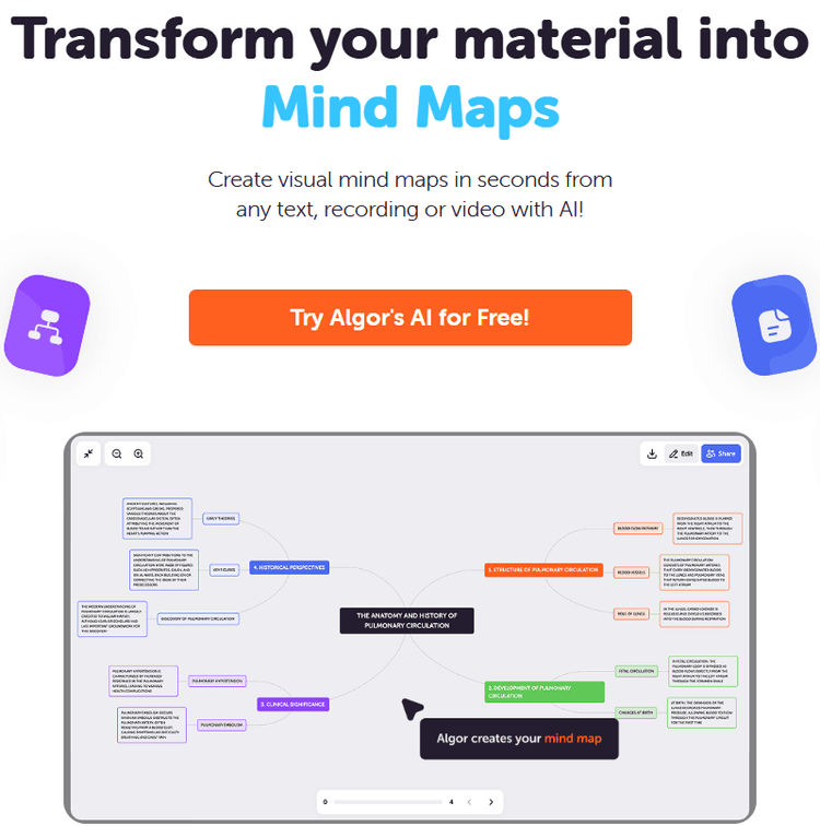 At the heart of Algor lies advanced AI technology capable of analyzing and processing diverse content formats. By inputting your study materials—be it a lengthy document or an audio lecture—Algor's AI engine dissects the information to generate structured visual aids. This process not only saves time but also enhances comprehension by presenting information in a more digestible format.