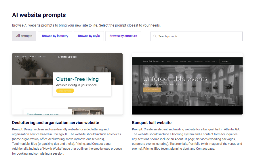 Pro Tip: Try prompts like "Build me a website for a vegan bakery with online ordering" or "Create a consultant portfolio with client testimonials section" for best results.