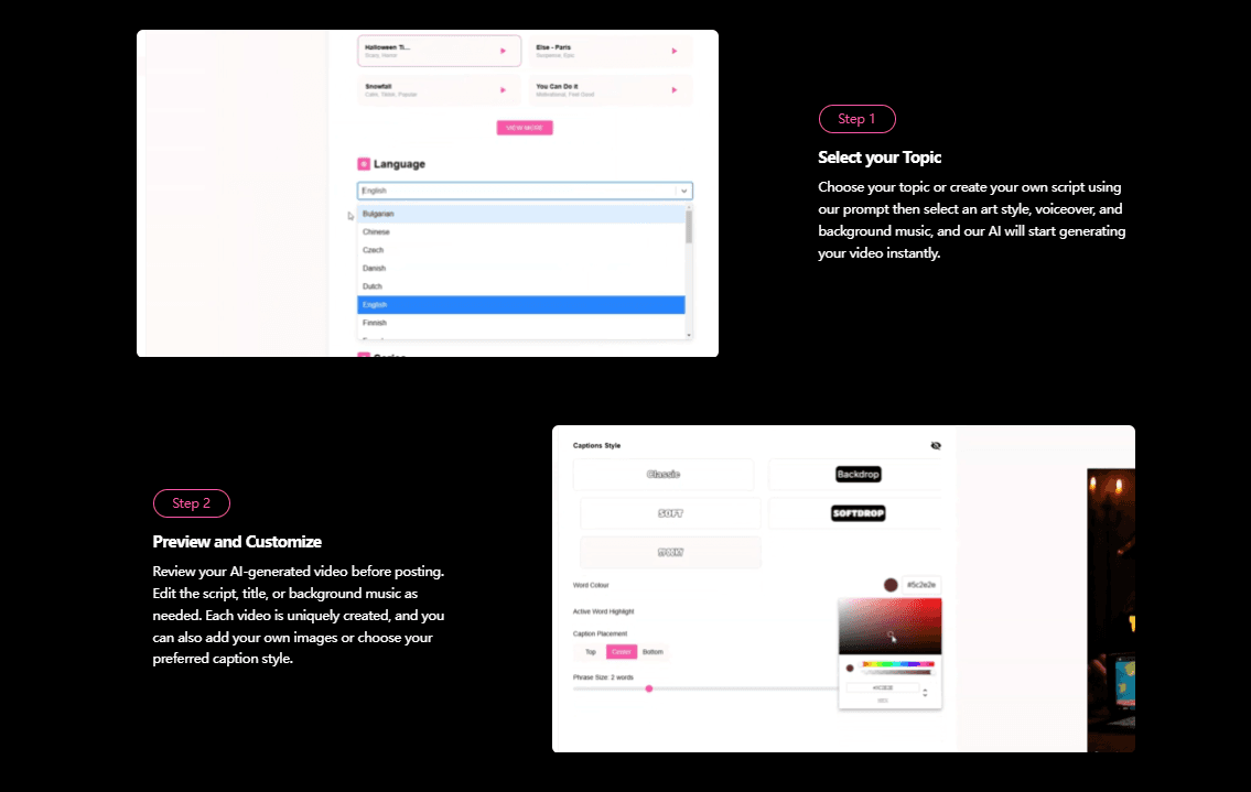 The platform's primary value proposition lies in its ability to create faceless videos - a format that has gained immense popularity across social platforms like TikTok, Instagram Reels, and YouTube Shorts. How does Blipix accomplish this? By leveraging advanced AI technologies to transform simple text prompts into visually appealing short videos in minutes, not hours.