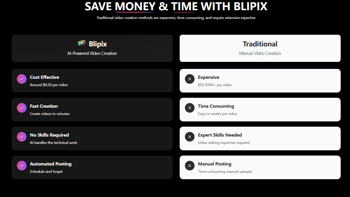 For content creators looking to stay ahead of trends, incorporating AI-generated video content into your strategy now could provide a competitive advantage. Whether you're building a personal brand, marketing products, or creating educational content, Blipix offers an accessible entry point into the world of AI-powered video creation without requiring technical expertise or on-camera presence.