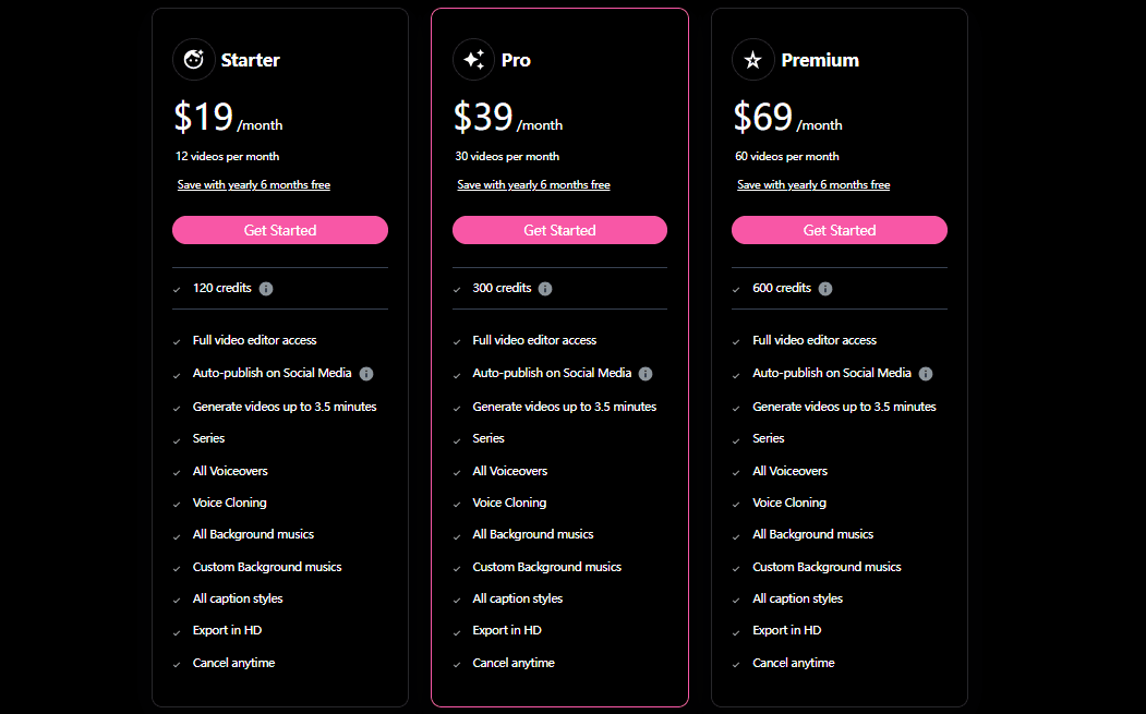 Wondering how much it costs to leverage this AI Shorts Video Generator? Blipix offers a tiered pricing structure designed to accommodate everyone from casual content creators to enterprise-level marketing teams.