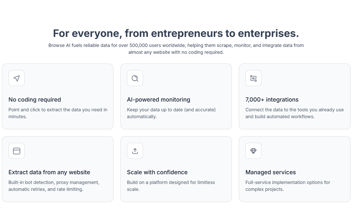 But how does it compare to alternatives? While tools like Octoparse or ParseHub offer similar functionality, Browse AI stands out with its intuitive UI and faster learning curve.