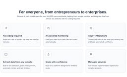 With $2.3 million in seed funding (2022), Browse AI is expanding its AI web crawler capabilities. Roadmap highlights include: