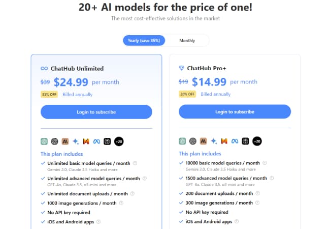 - Unlimited advanced model queries/month (GPT-4o, Claude 3.5, o3-mini and more)