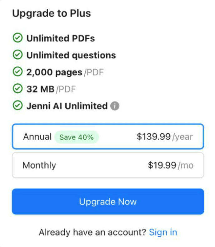 Understanding the diverse needs of its user base, ChatPDF offers flexible pricing options: