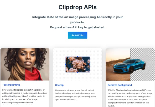 4. Deep Learning Algorithms: Various deep learning techniques are likely implemented across Clipdrop's suite of tools to handle complex tasks like image enhancement and style transfer.
