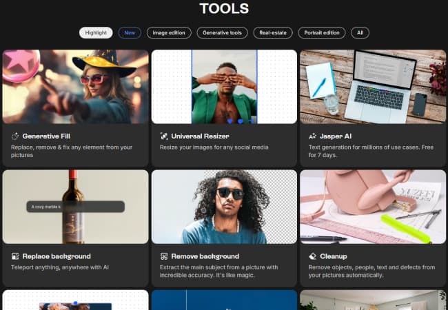 Clipdrop by Jasper is a comprehensive AI-driven platform that combines cutting-edge machine learning algorithms with user-friendly interfaces to streamline various aspects of the creative process. From image editing and background removal to text-to-image generation and 3D object creation, Clipdrop offers a wide array of tools designed to empower both professional designers and casual users alike.