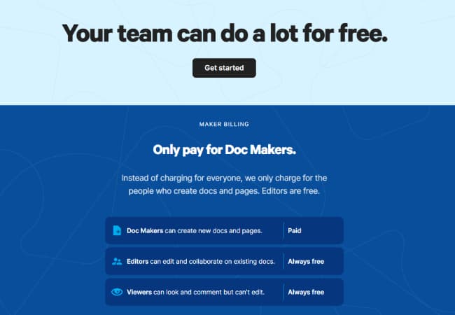 Pro Plan: [$12/month or $120/year] per Doc maker. Everything in Free Plan, plus: