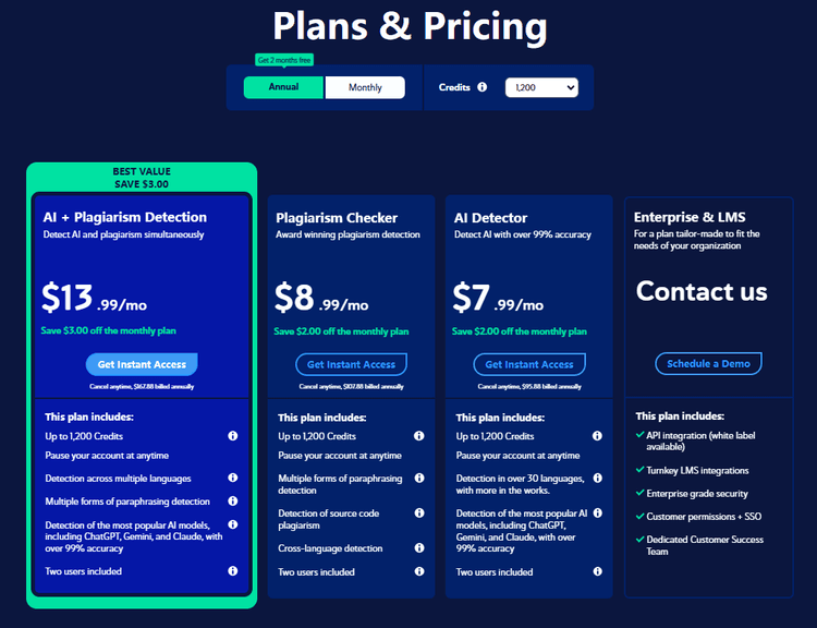 When it comes to pricing, Copyleaks offers a range of plans to suit different needs and budgets. Whether you're an individual user or a large organization, there's a plan that fits your requirements. The platform provides a free trial, allowing users to experience its capabilities before committing to a subscription. For those who need more advanced features, premium plans are available, offering enhanced functionality such as batch processing, API access, and integration with learning management systems (LMS).