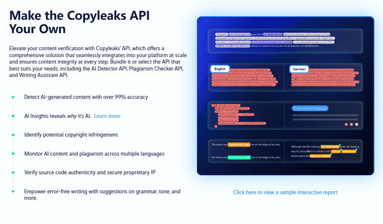 A:Copyleaks supports multiple languages, making it a versatile solution for users worldwide.