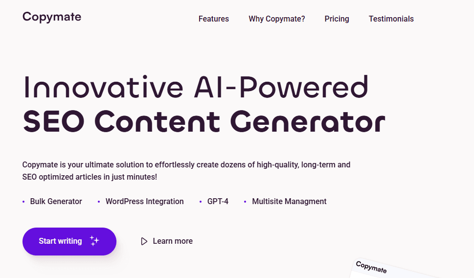 Unlike traditional content tools that simply rewrite existing text, Copymate is a comprehensive AI SEO assistant that understands context, maintains your brand image, and creates original content optimized for search engines. But how exactly does it do this? Is it worth your investment? Let's explore.