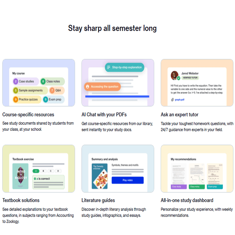 A:Coursehero offers extensive resources, personalized learning, and 24/7 AI support.