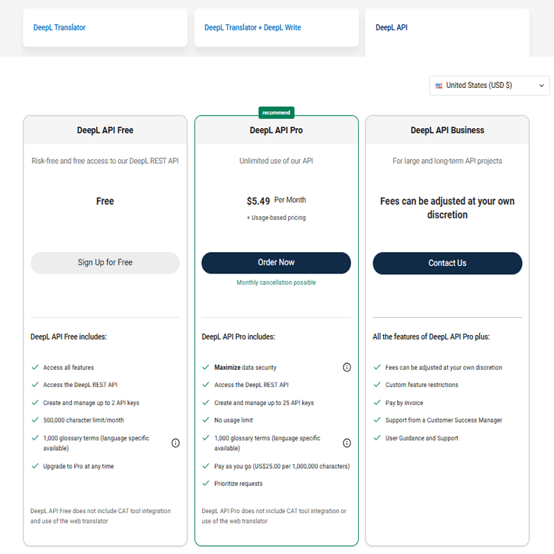4. API Integration – Developers can incorporate DeepL’s AI translation services into their applications seamlessly.