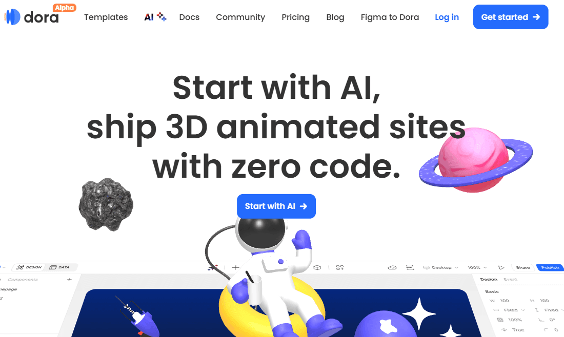 - AI-Powered Automation – Instead of dragging and dropping elements, you describe what you want, and Dora AI builds it for you.