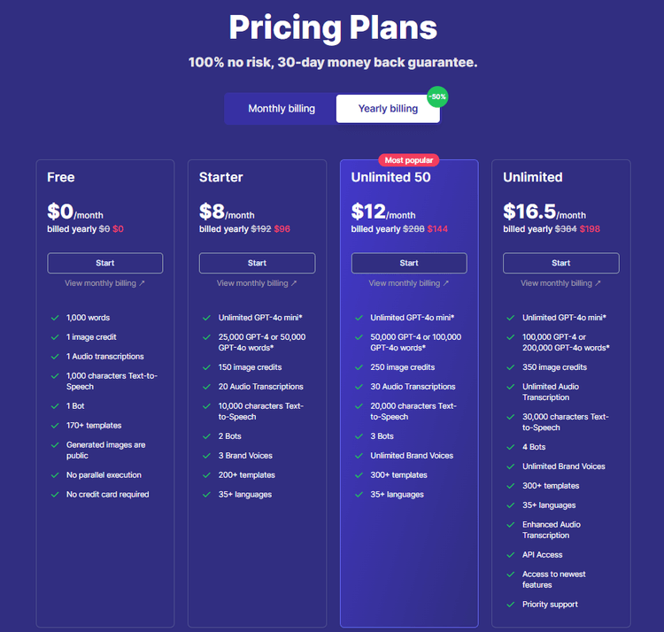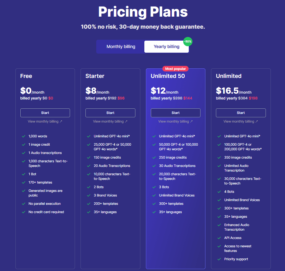 When it comes to choosing an AI platform, pricing is often a critical factor. Easy Peasy AI offers a range of pricing plans designed to cater to different needs and budgets. Whether you're an individual looking to explore AI capabilities or a large enterprise seeking comprehensive solutions, there's a plan for you.