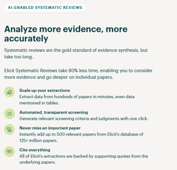 Elicit is a powerful AI research assistant that offers a wide range of features to streamline the research process. Whether you're an academic, a healthcare professional, or a business analyst, Elicit can help you find, analyze, and synthesize information more efficiently. With its user-friendly interface and advanced AI technologies, Elicit is a valuable tool for anyone involved in research.
