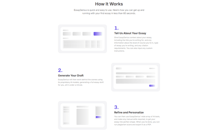 But how exactly does EssayGenius work? The platform employs a user-friendly interface where you input your topic, required word count, and academic level. The AI then generates a structured essay complete with introduction, body paragraphs, and conclusion - all properly researched and cited. You can further refine the output through specific prompts and editing features.