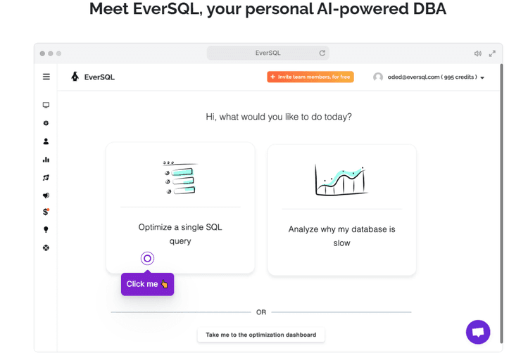 The core concept of EverSQL is very simple: paste your SQL query along with your database schema, and the AI engine will identify potential performance bottlenecks and make optimization suggestions. What usually takes hours of manual analysis work can now be done in seconds with EverSQL's "Automate SQL Database" feature.