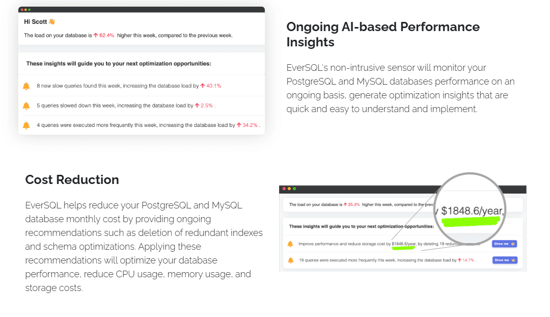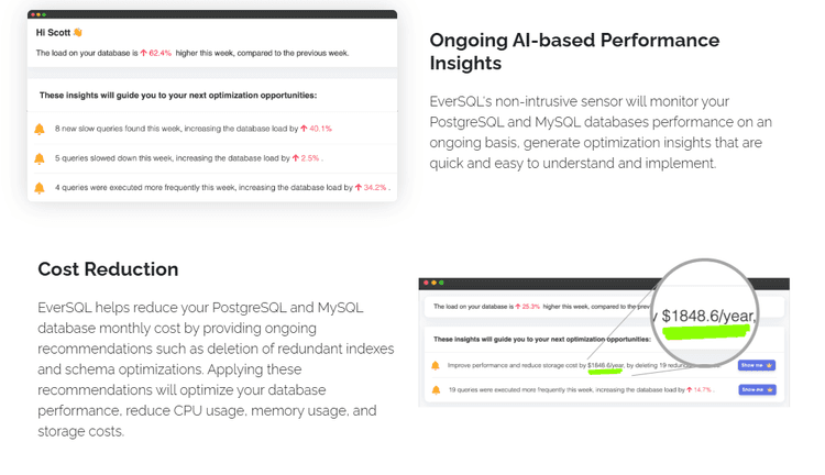 How is EverSQL cost-effective compared to hiring a database consultant? Consider this: a database optimization expert might charge $150-200 per hour, while EverSQL can provide ongoing optimization recommendations throughout the year for a fraction of that cost.