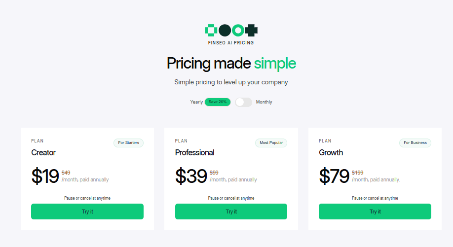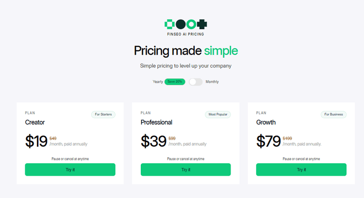 Finseo offers a tiered pricing structure designed to meet the needs of financial institutions of different sizes. Based on my research, their current pricing model includes: