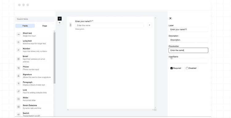 Form Ji's AI can intelligently determine what fields are necessary for your specific use case, suggest appropriate question types, and even recommend logical flow between questions. How does it know what fields to include? The AI analyzes your description and draws from its training on thousands of form examples to identify the most relevant components for your specific needs.