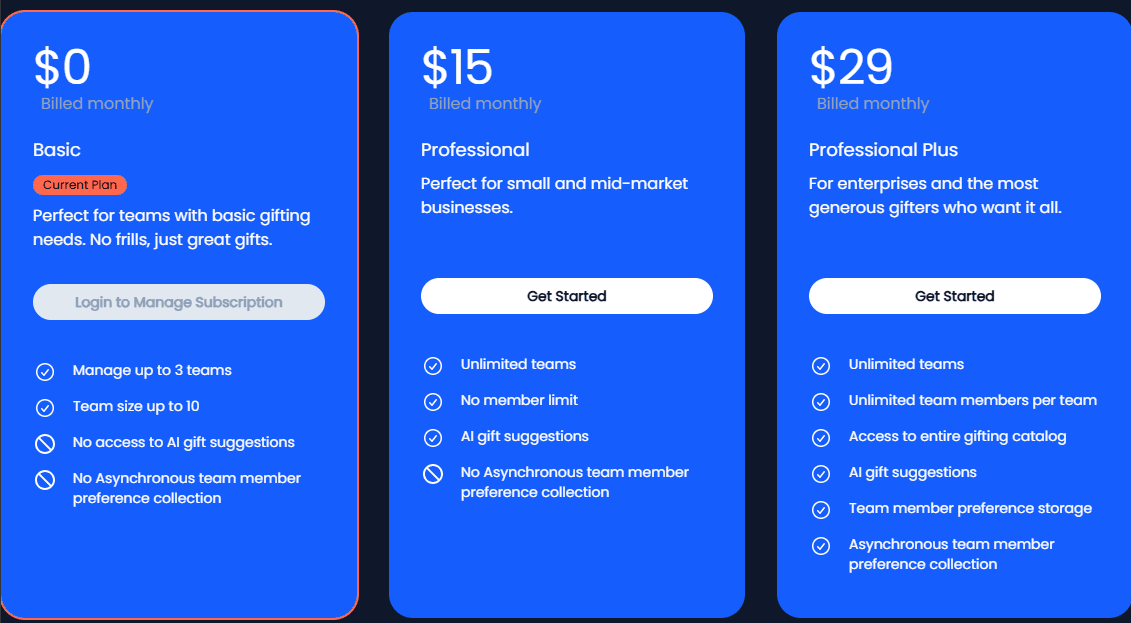 Gift With Bear offers a tiered pricing structure that makes it accessible for both casual gift-givers and professionals who regularly need gift ideas: