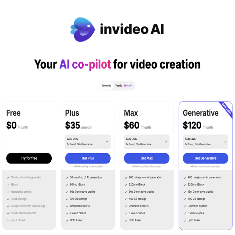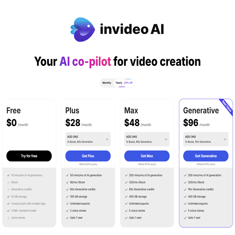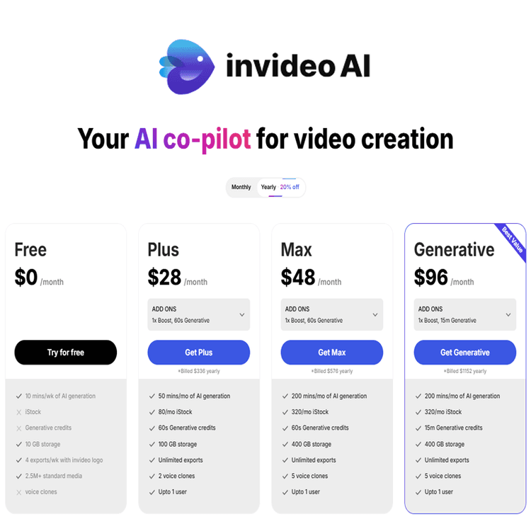 Understanding the pricing structure of Invideo AI is crucial for potential users. Let's break down the various plans and what they offer.