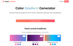 Magic Gradient is an advanced AI gradient generator that uses artificial intelligence to create beautiful, customizable gradients with minimal effort. Unlike traditional gradient tools that require manual selection and positioning of colors, Magic Gradient uses artificial intelligence to instantly generate professional-quality gradients.