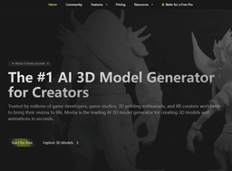 Meshy is an AI-powered 3D model generator that enables users to convert text descriptions and images into detailed 3D models within seconds. Founded in 2021 and headquartered in San Jose, California, Meshy has quickly established itself as a leader in the generative AI space for 3D content creation. The platform caters to a diverse audience, including game developers, studios, 3D printing enthusiasts, and XR creators, providing them with tools to effortlessly bring their ideas to fruition.