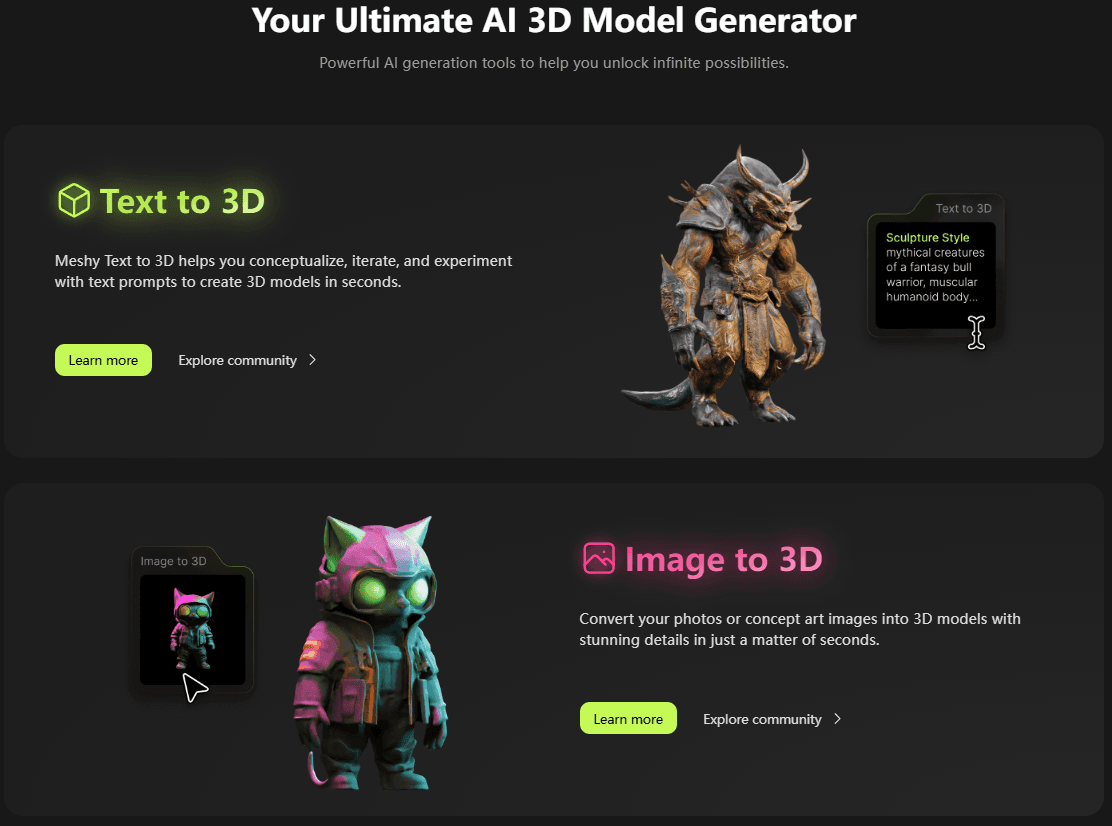 In today's rapidly evolving digital landscape, the demand for efficient and innovative 3D content creation tools has never been higher. Enter Meshy, a cutting-edge AI-driven platform that transforms the way creators generate 3D models. Whether you're a game developer, 3D printing enthusiast, or XR creator, Meshy offers a suite of tools designed to streamline your workflow and bring your visions to life.