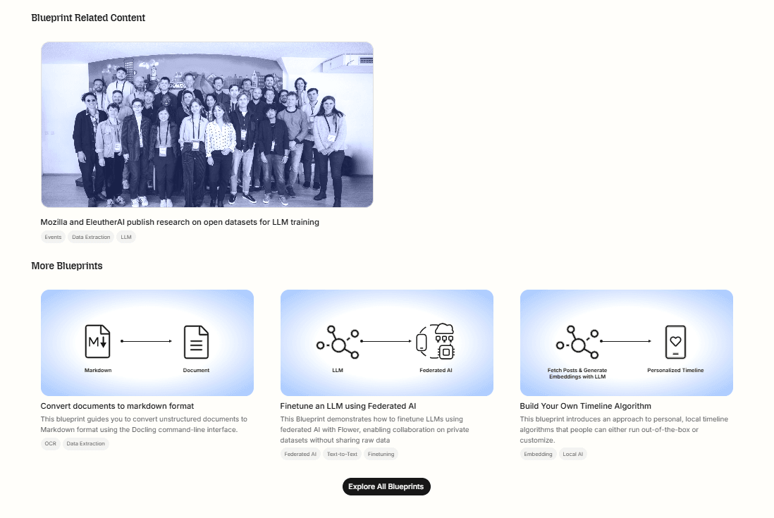 Mozilla AI’s Blueprints platform has a modular architecture that supports integration with multiple large language models (LLMs). Rather than developing proprietary base models, Mozilla AI takes an agnostic approach that allows users to choose from a variety of base models, including those from OpenAI, Anthropic, and open source alternatives. This flexibility in AI workflow management means organizations can choose the model that best meets their specific needs, whether it’s excellence in a particular domain or compliance with specific ethical guidelines.