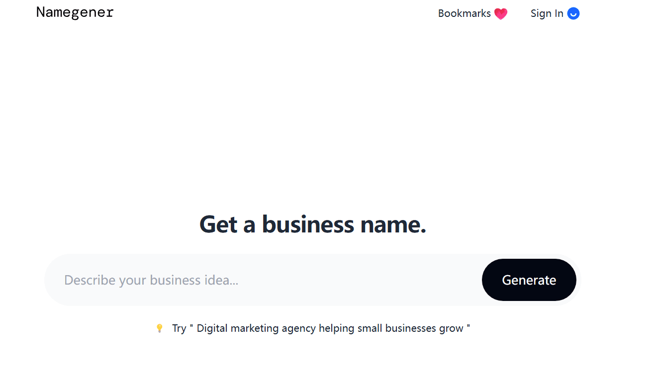 How to make the most of Namegener? Expert users suggest providing detailed information about your business concept, target audience, and brand values to get more targeted results. The platform works best when specific parameters are provided rather than vague guidance.
