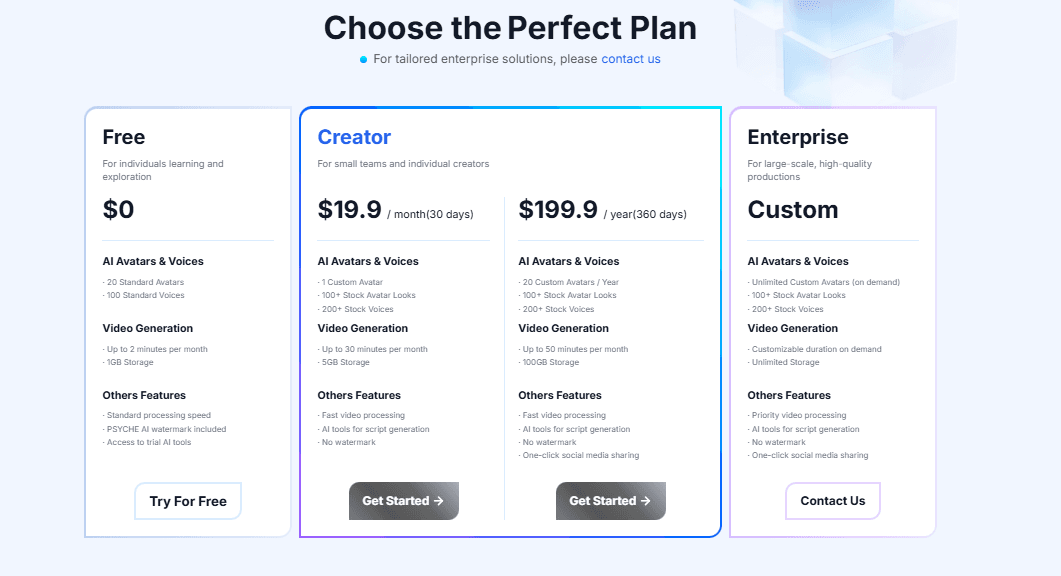 PSYCHE AI offers a tiered pricing model that caters to various user needs, from individual content creators to enterprise-level organizations. While pricing may evolve over time, their current structure typically includes: