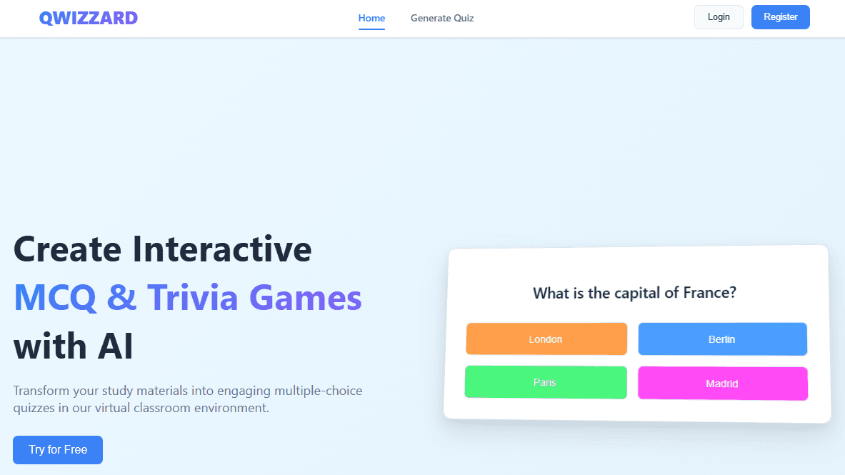 In today's fast-paced educational landscape, creating engaging quizzes that effectively test knowledge while maintaining student interest can be challenging. Enter Qwizzard, an innovative AI Question Generator that's transforming how educators, content creators, and businesses approach assessment creation.