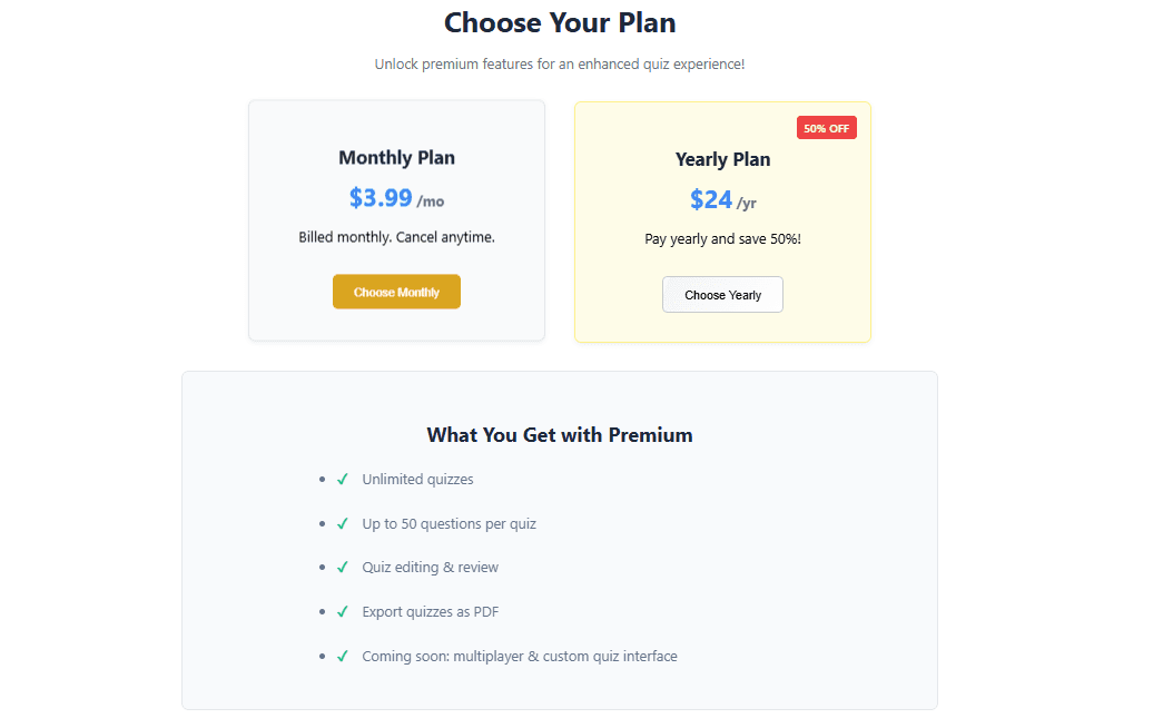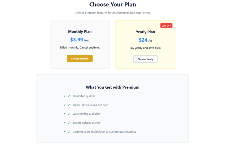 Understanding Qwizzard's pricing structure is essential for determining if this AI Question Generator fits your budget.