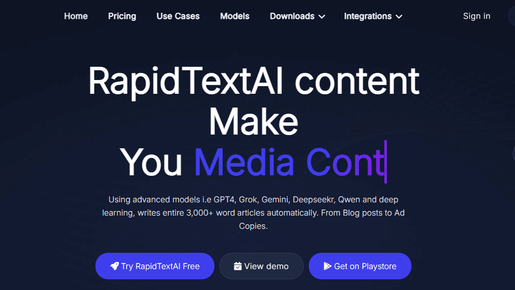 RapidTextAI represents the next generation of AI content generators designed for content creators, marketers, and business professionals. Unlike basic text generators, RapidTextAI offers a set of sophisticated content creation tools powered by advanced artificial intelligence.