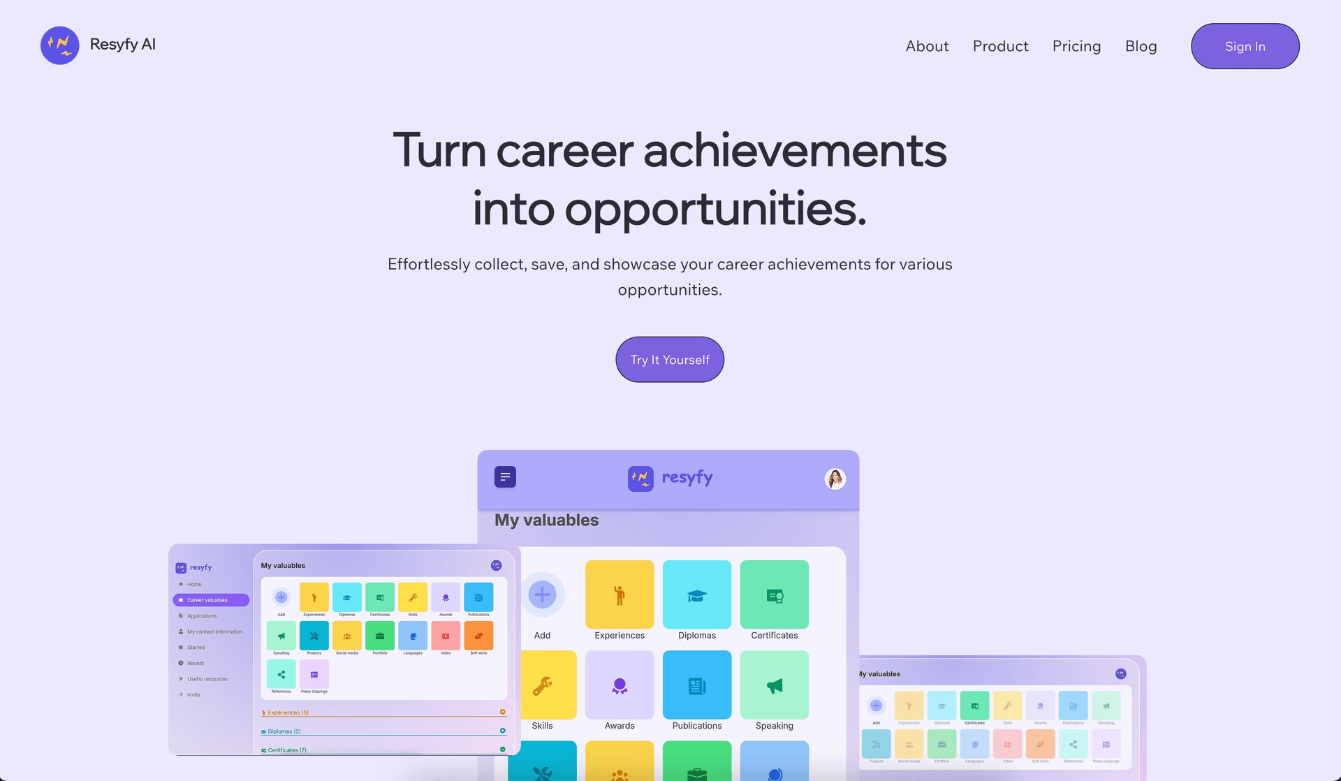 Resyfy is like your personal career co-pilot, turning everything you’ve achieved into a ready-to-go, one-click portfolio. Whether you're switching careers, applying for a grant, or chasing sponsorships as an athlete, it keeps all your wins organized and ready to showcase. No more scrambling to update resumes or pull things together last minute.