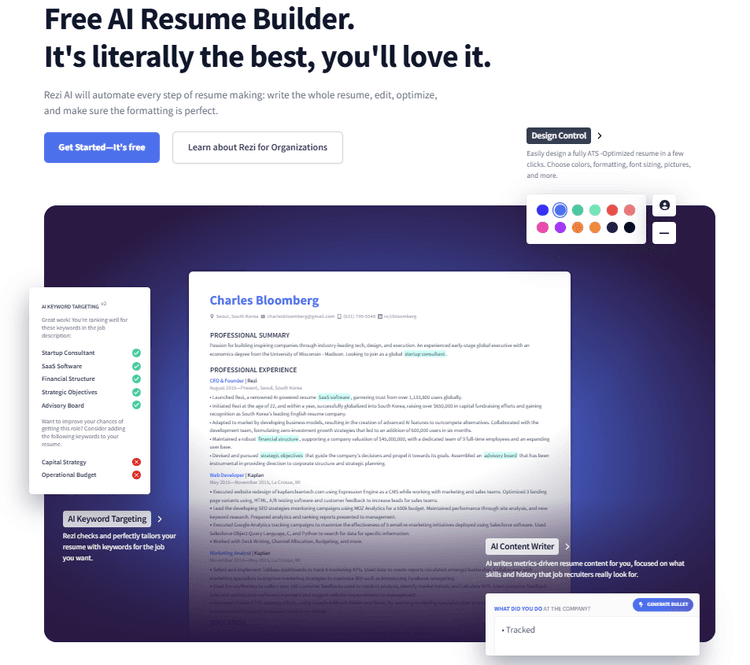 One of the standout features of Rezi AI is its resume summary generator. This tool uses natural language processing (NLP) to analyze your work experience and skills, crafting a concise and impactful summary that grabs the attention of hiring managers. But that's not all. Rezi AI also offers an AI resume summary generator free of charge, making it accessible to job seekers on a budget.