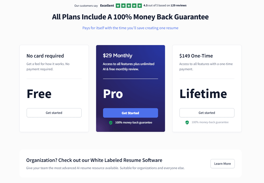 A:Rezi AI offers a free version, a Pro plan and Lifetime plan.