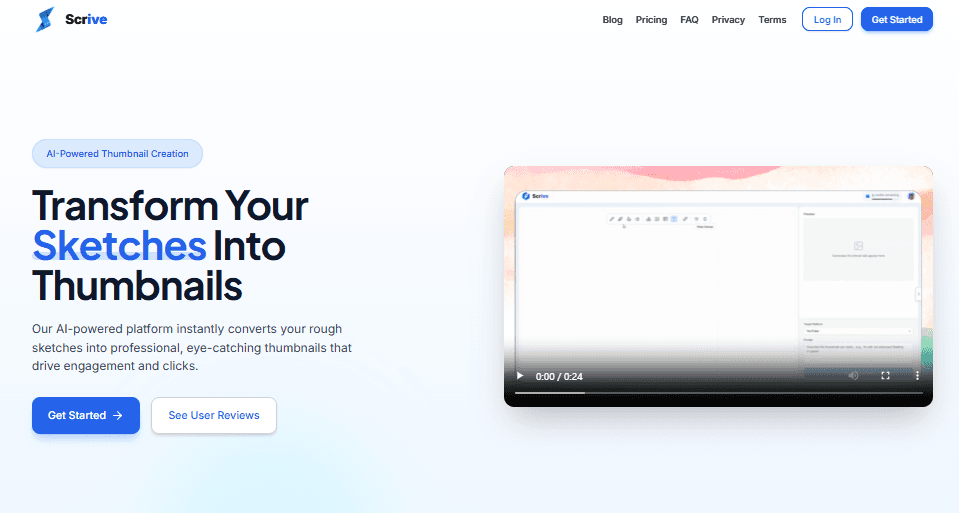 Scrive is an innovative AI thumbnail maker that makes it easy for users to transform simple sketches, images, or concepts into polished, professional thumbnails.