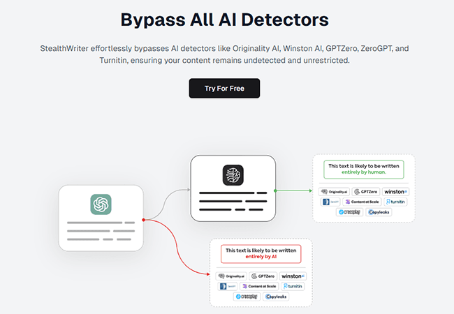 A:StealthWriter is designed to bypass various AI detectors, including Originality AI, GPTZero, and Turnitin.