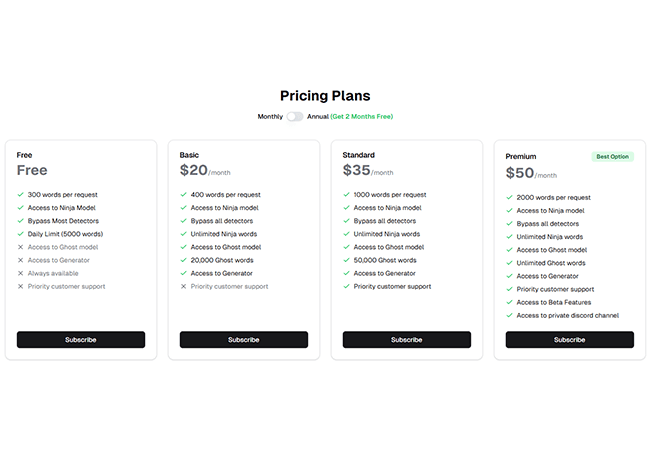 Understanding the diverse needs of its user base, StealthWriter offers a range of pricing plans to accommodate different requirements. While specific pricing details are available on their official website, the platform provides both free and premium options. The free version allows users to experience the core functionalities, while premium plans unlock advanced features such as higher word count processing, priority support, and enhanced customization options. This tiered approach ensures that both individual users and large organizations can find a plan that aligns with their content creation goals.