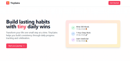 Whether you want to write a novel, start a side hustle, or simply develop a more regular exercise habit, TinyGains provides you with a uniquely supportive environment to help you turn your dreams into reality through small, consistent actions. As the TinyGains motto says: "It takes small things to make a big difference."