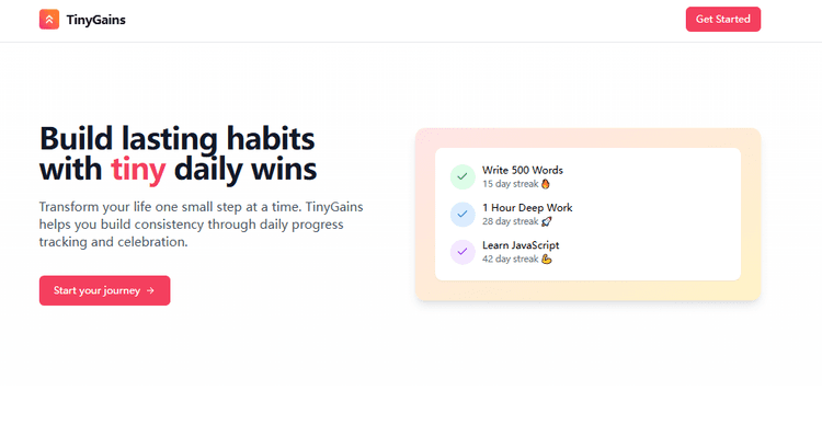 TinyGains is a web-based productivity platform that focuses on the power of small, consistent actions to create significant change in your life.Unlike traditional productivity apps that often feel clinical and rigid, TinyGains infuses personality into the experience. The platform's core philosophy centers around the idea that meaningful change doesn't happen overnight—it's the result of tiny, consistent gains accumulated over time. But how exactly does TinyGains work to help you overcome procrastination?