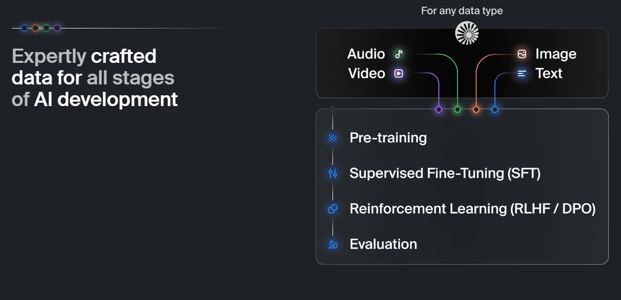 - Data Annotation and Labeling: The platform provides tools for image annotation, text classification, audio transcription, video labeling, semantic segmentation, and more. These services are crucial for creating structured datasets from raw data, which in turn train AI models effectively.