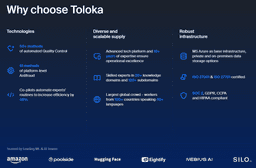 In conclusion, Toloka stands out as a reliable partner for businesses seeking high-quality data solutions for AI development. Its blend of machine learning prowess and human.