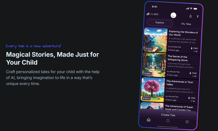 WonderTale is an AI-powered story creation platform specifically designed to foster creativity and connection between parents and children. Launched in 2024, this intuitive application leverages advanced artificial intelligence to generate personalized, interactive bedtime stories based on user prompts and preferences.